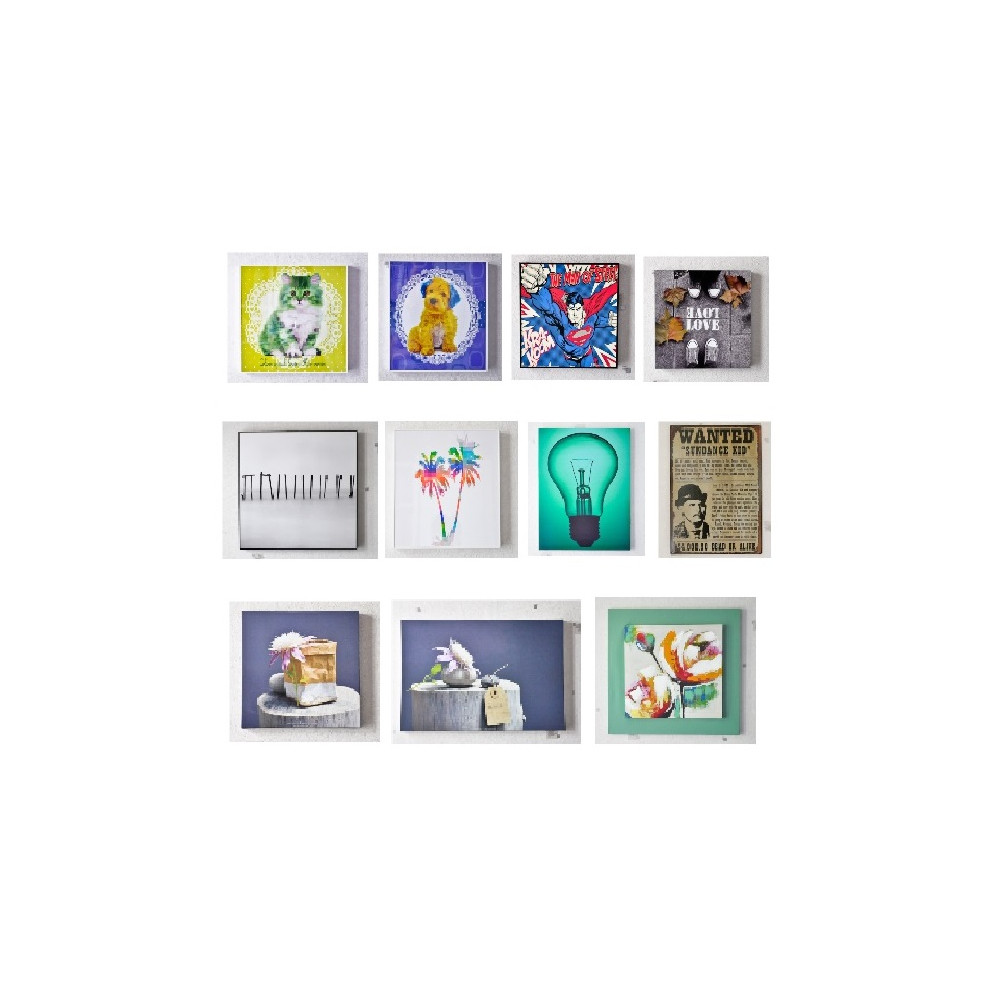 14 tableaux, toiles imprimées et sérigraphies avec motifs divers