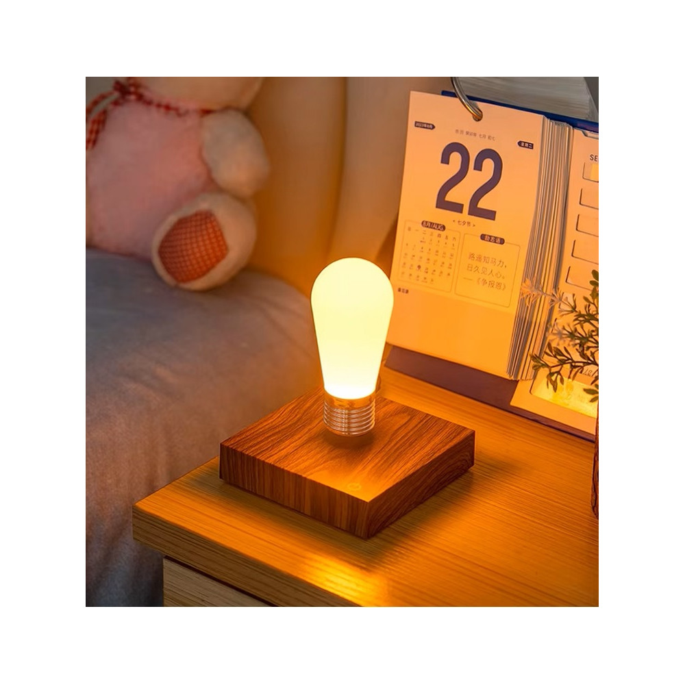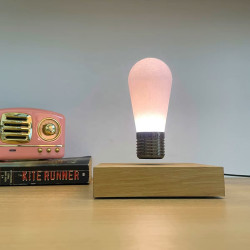 La magie opère avec l'ampoule qui lévite au-dessus de sa base électromagnétique bois avec induction.