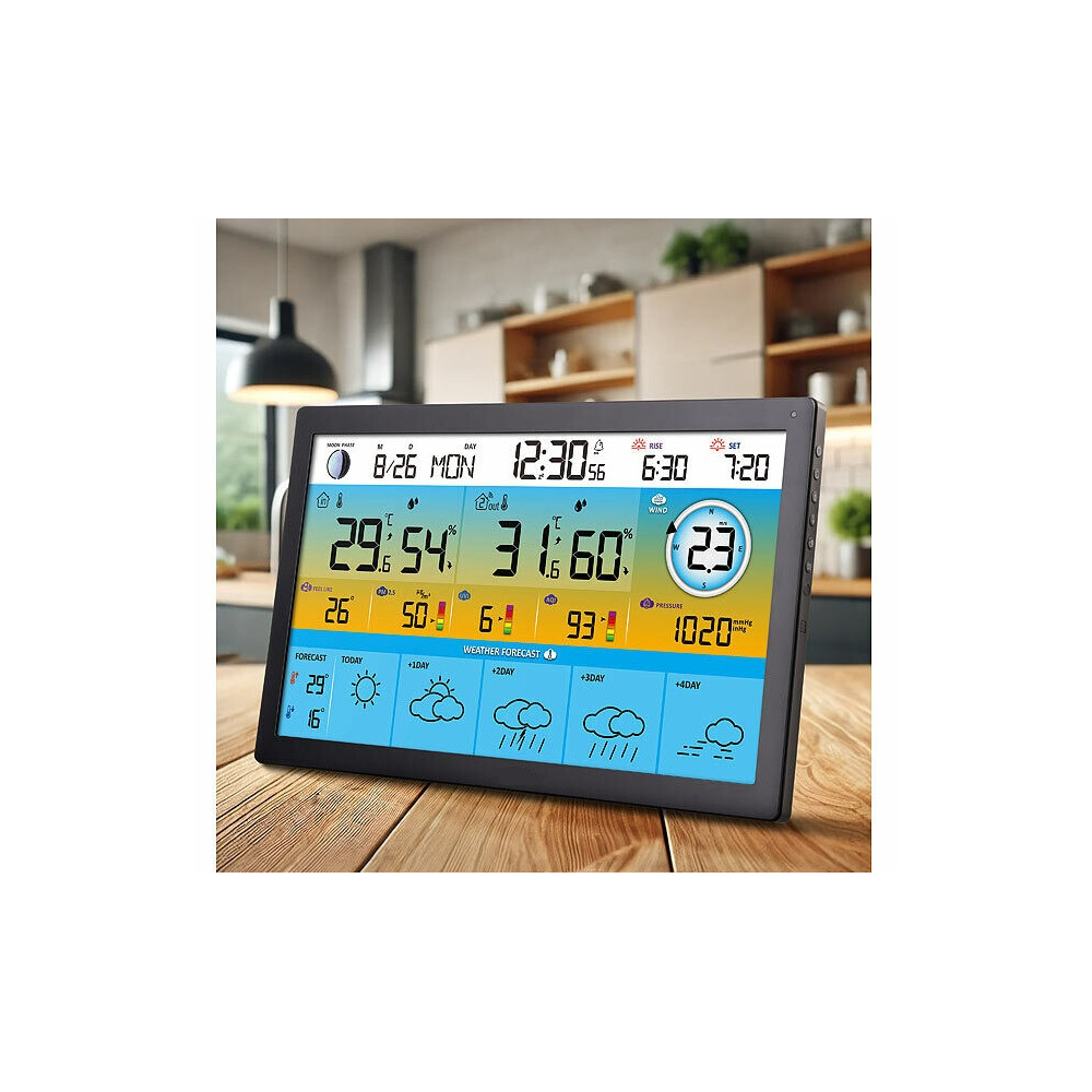 - Grand écran LCD clair et coloré de 40 cm avec tendance météo et bien plus !