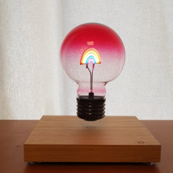 La magie opère avec l'ampoule RAINBOW qui lévite au-dessus de sa base électromagnétique bois avec induction.