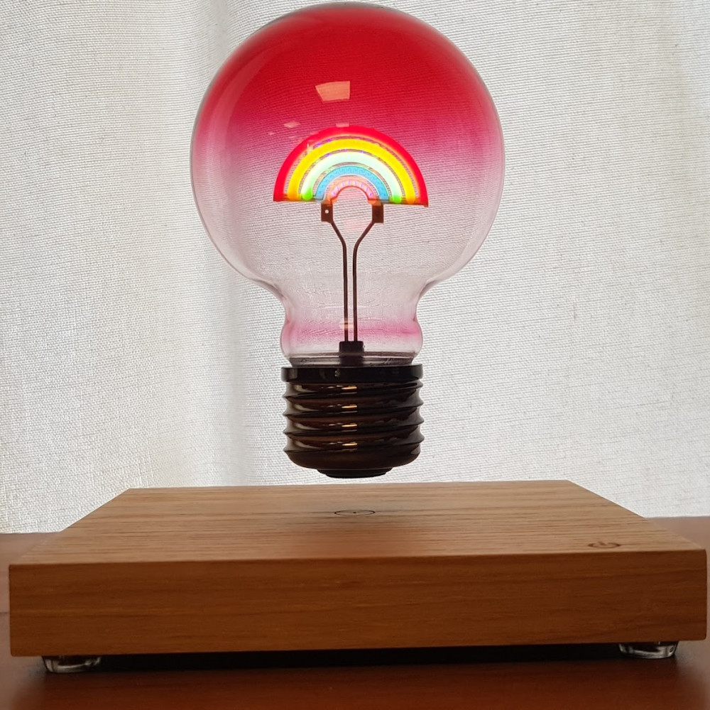 - L'ampoule avec sa led en forme d'arc-en-ciel lévite comme par magie