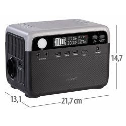 Batterie lithium-ion intégrée 230,4 Wh, chargement par 230 V, chargeur allume-cigare (non fourni) ou par panneau solaire jusqu'à 40 W (non fourni)