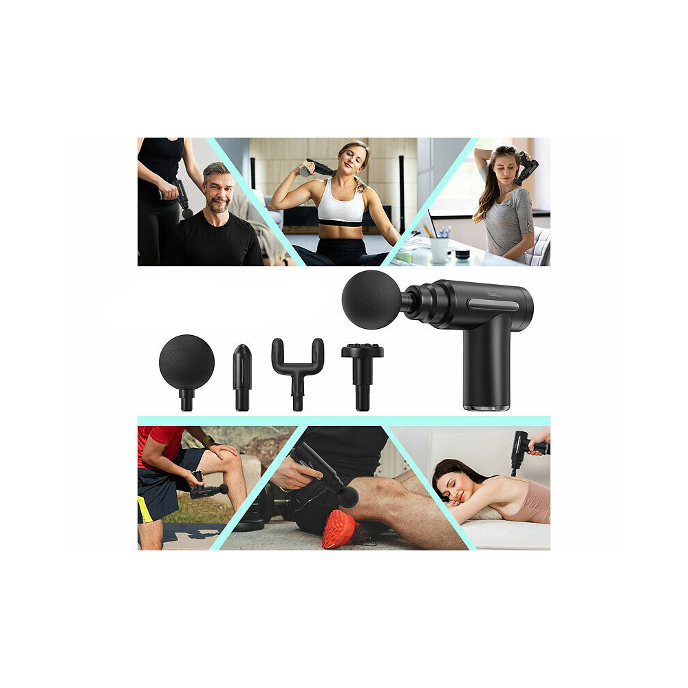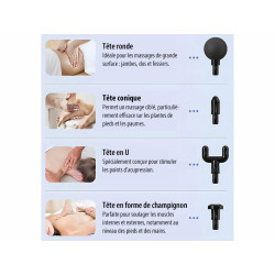 - Massage musculaire profond avec 4 têtes de massage interchangeables pour les différentes parties du corps.