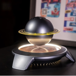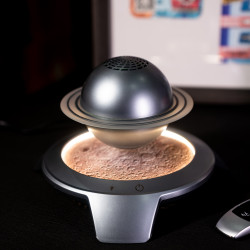 Cette enceinte high tech a sa partie supérieure à l'image de la plus belle planète du système solaire qui flotte dans les airs comme par magie en s'illuminant en changeant de couleur.