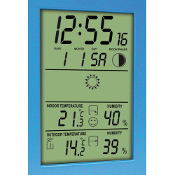 Vous disposerez d'informations essentielles telles que la température et l'humidité de l'air en intérieur comme en extérieur (par sonde sans fil fournie), l'heure et la date, le tout résumé au travers d'un écran LCD organisé et bien lisible.
