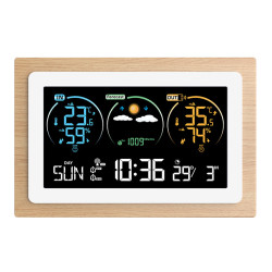 Vous disposerez d'informations essentielles telles que la température et l'humidité de l'air en intérieur comme en extérieur (par sonde sans fil fournie), l'heure et la date, le tout résumé au travers d'un écran couleur parfaitement organisé et bien lisible.