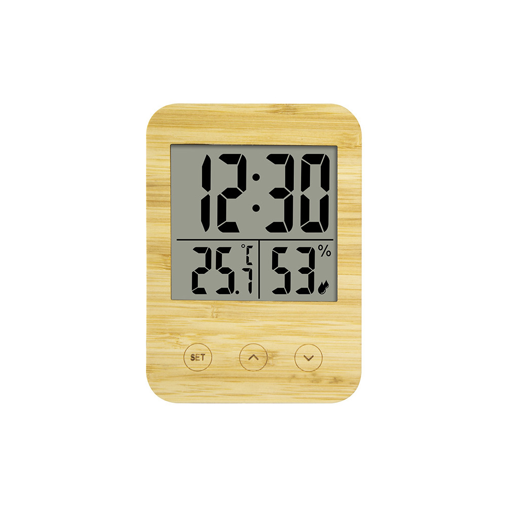 - Une élégante horloge au design fin avec un affichage LCD et des données bien lisibles avec température et hygrométrie