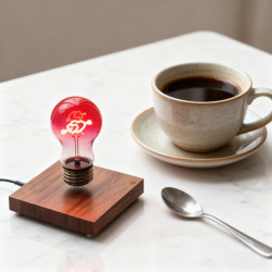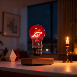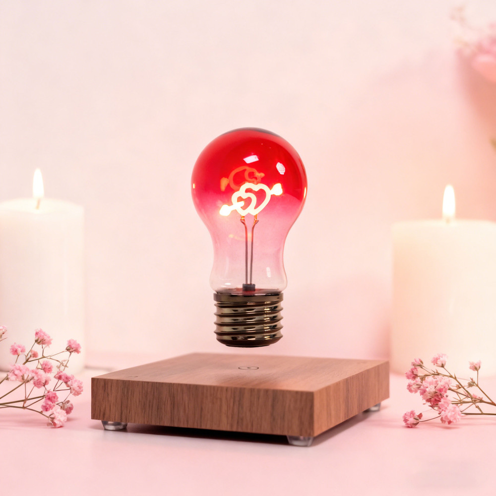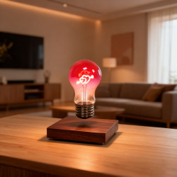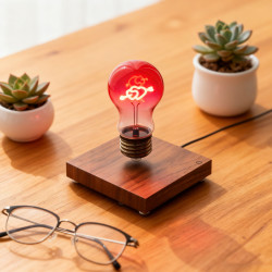 La magie opère avec cette ampoule RED LOVE qui lévite au-dessus de sa base électromagnétique bois avec induction.