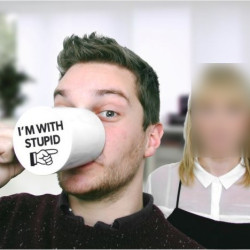 - Impression sous le mug : I’m with stupid avec un doigt désignant la personne à vos côtés.
